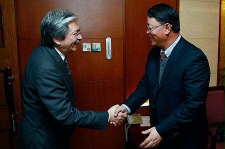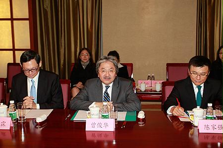 孟建民会见香港特别行政区财政司司长曾俊华一行 来源:国资委网站 2013-11-12