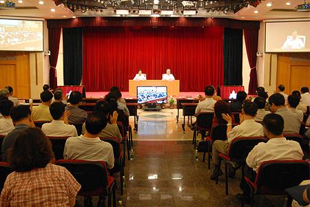 7月16日,国资委党委召开党委中心组学习(扩大) 会议,深入学习马克思主义群众观点和党的群众路线的基本内容、丰富内涵、精神实质和实践要求。国资委党委书记、副主任、国资委党委党的群众路线教育实践活动领导小组组长张毅主持会议。中央党校教授王长江围绕党的群众观点和群众路线作了辅导报告。国资委党委委员,监事会主席,巡视组组长,副秘书长,机关全体党员干部和直属事业单位、管理局系统党政领导班子成员,直管协会党组织负责人1000余人参加会议。