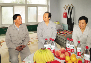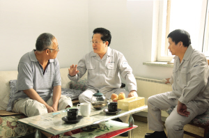 9日下午,鞍钢集团公司党委副书记、工会主席尹利一行往返鞍山与鲅鱼圈两地,深入到鞍钢股份炼铁总厂退休人员隋国才和鲅鱼圈钢铁分公司职工吕建国的家中,了解实情、征求意见、解决问题。“这次我们来主要是了解情况,听听你们的意见,大家通过沟通交流,寻找切实可行的方案,共同解决存在的问题。”在隋国才的家中,尹利与隋国才夫妻二人促膝而坐,了解他们生活中存在的困难。尹利鼓励隋国才调整心态,向前看,把身体恢复调整好,提高生活质量,迎接美好的生活。9日傍晚,尹利来到位于鲅鱼圈东湾公寓的吕建国家中,就开展教育实践活动、切实解决职工生活工作中的困难等问题与吕建国交谈起来。尹利认真倾听吕建国提出的意见和建议,他说,群众利益无小事,要切实转变观念,更新思路,从细节入手,认真做好每一个关系职工利益的实事。要不断完善工作机制,优化人力资源配置,在收入分配上向重点岗位、关键岗位倾斜,充分调动职工的积极性。